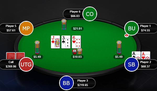 Как правило, игроки путаются из-за названия ставки. Дело в том, что 3 бет в покере, делается игроками уже после первого рейза. Как такое возможно? Просто на префлопе блайнды принято считать первым рейзом. Рассмотрим ситуацию на конкретном примере.