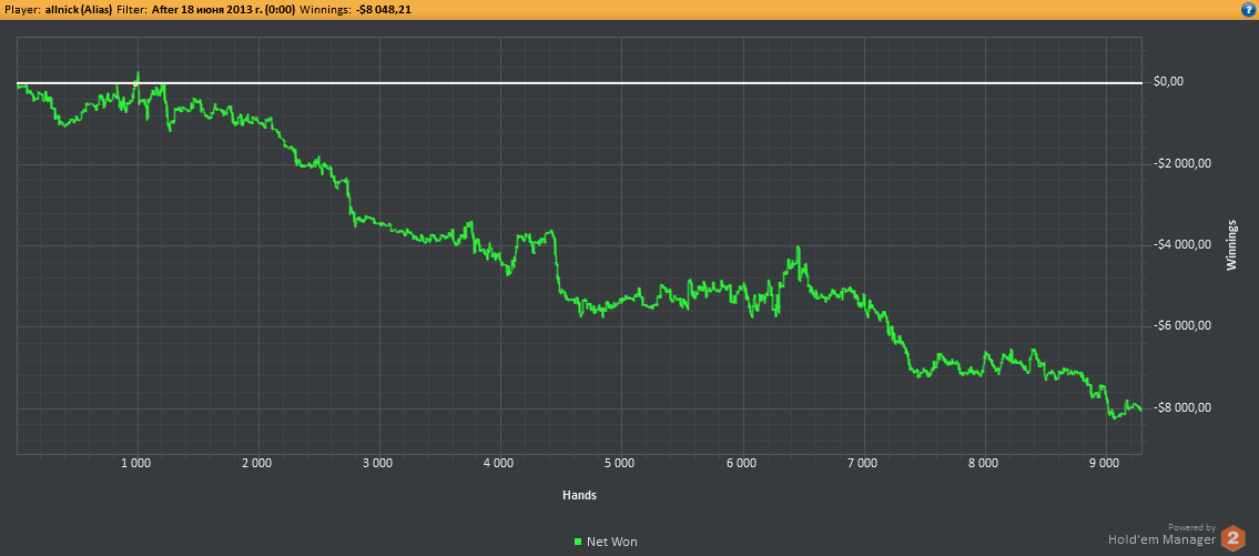 Даунстрик может дать вам понять самое главное: если слабый игрок на протяжении некоторого времени имеет успех, то выйдя на длинную дистанцию, он поедет вниз, а более сильный покерист начнет подниматься и идти в плюс. Если вы видите, что двигаетесь в тупик, и начинаются проигрыши, лучше остановиться и отложить все на следующий раз.