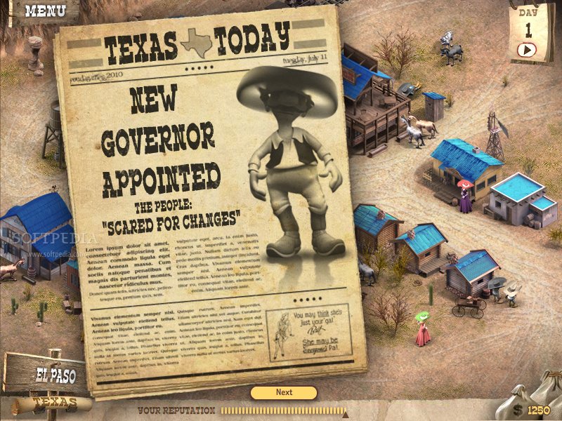 Начнёте игру вы с небольшого капитала, будете иметь возможность подстроить тип персонажа так, как вам нравится и назвать его. После же вашей задачей будет, выполнять данные вам поручения. Именно это и позволит вам отправиться в другую локацию. А точнее, вы получите возможность участвовать в поединках, играть за кэш-столами. Главной задачей будет — заработок денег. Так как цель игры состоит в скупке всей недвижимости в Техасе. Ведь только слово такого крупного землевладельца имеет вес.