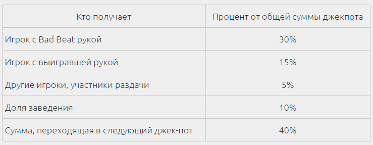 Bad Beat Jackpot. В данной акции нет ничего страшного в том, чтобы проиграть с комбинацией Фулл-Хаус или выше. Дело в том, что здесь проигравший игрок получает максимальную часть накопительного Джек-пота. Прочие участники акции также получают определенные награды.
