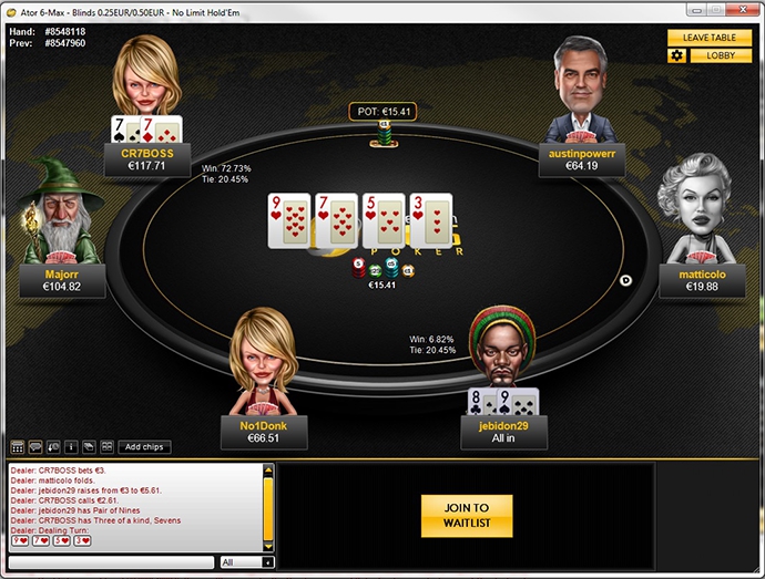 На втором месте по популярности остается 888Poker. Однако «восьмерки» активно конкурируют со своими главными соперниками, и некоторые пользователи считают их лидерами. Действительно, востребованность этой комнаты все больше и больше набирает обороты, хотя по-прежнему значительно уступает в посещаемости Старсам.