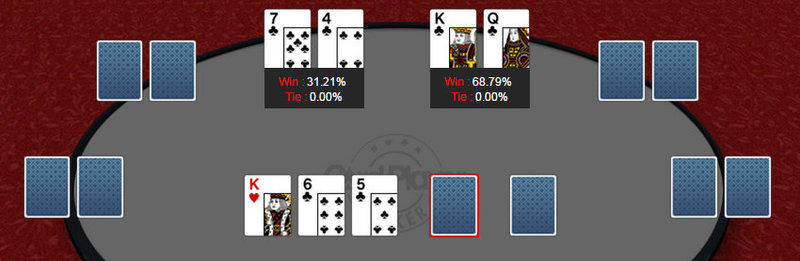 Иногда бывает, что старшая карта лежит на флопе и, соответственно, будет общей для всех игроков за столом. В такой ситуации сравниваются следующие по старшинству карты. Если и они равны, то сравнивают третью и так до тех пор, пока не определится победитель или, если достоинство всех карт окажется одинаковым, банк не будет разделение поровну.